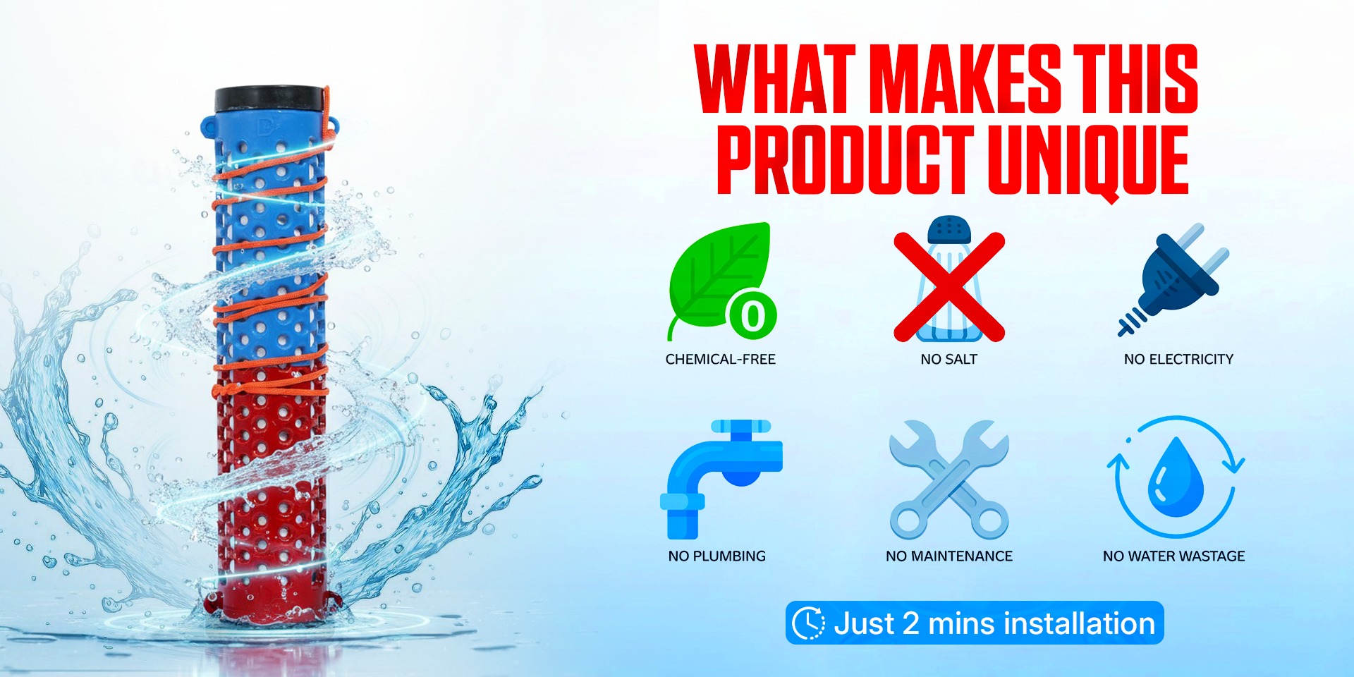Best part is, Water Magnet has no maintenance. I just placed it in the tank and forgot. It works automatically and gives us soft water every day.